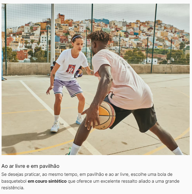 A prática do basquetebol exige o uso de uma bola específica, quer em ambiente interior de pavilhão ou exterior, como no campo de um jogo de streetball. Seja qual for o teu nível de prática, a bola de basquetebol permite treinar e organizar encontros de basquetebol em família ou entre amigos.