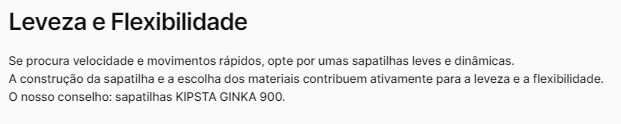 A aderência e o suporte são as qualidades essenciais para uma prática desportiva que exige constantes mudanças rápidas de direção!