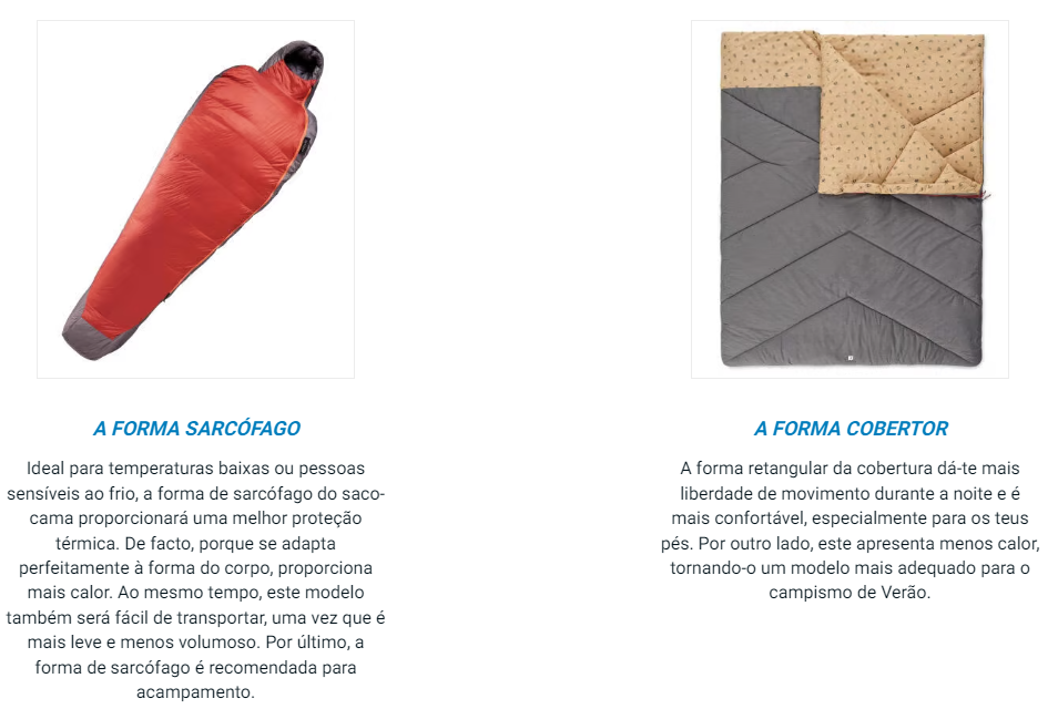 Ao escolher um saco-cama campismo ou acampamento, convém não ignorar um último critério: a forma.
