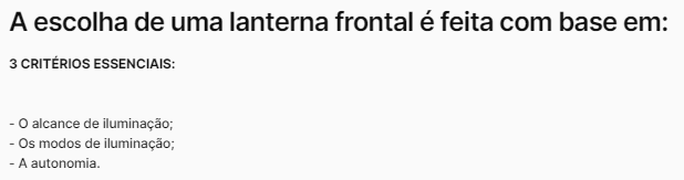 COMO ESCOLHER UMA LANTERNA FRONTAL? Beatriz V. 29 de Março de 2024 16:53 Atualizado Descobre aqui toda a gama de lanternas frontais! Artigos relacionados Métodos e custos de envio COMO ESCOLHER UMA RAQUETE DE PADEL? Click & Recolha COMO ESCOLHER A T-SHIRT ANTI UV PARA OS FILHOS COMO ESCOLHER UMA BOLSA DE CINTURA PARA CAMINHADA?