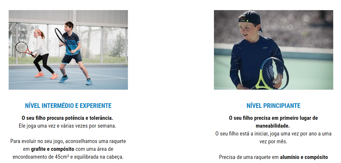 A escolha de uma raquete de ténis júnior é feita em primeiro lugar pelo nível de prática, que vai definir as expectativas a ter em relação aos modelos propostos. De seguida, o tamanho da raquete em relação ao seu filho também é importante.