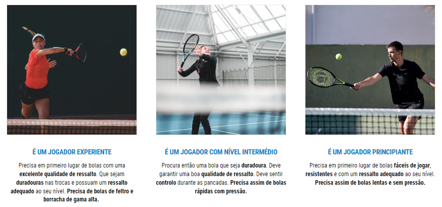 A escolha das bolas depende também do seu nível de prática, o qual se divide em três partes: principiante, intermédio, experiente.