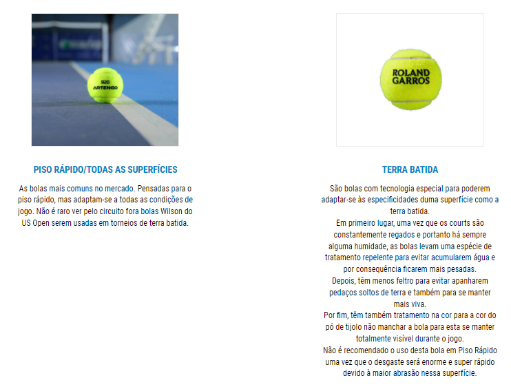 Por último, a escolha de bolas pode e deve ser influenciada pela superfície de jogo. Como sabemos, hoje em dia a nível oficial joga-se ténis em Piso Rápido, Terra Batida e Relva, embora praticamente não se produzam bolas específicas para Relva à exceção das míticas bolas Slazenger para o torneio de Wimbledon, terceiro Grand Slam de cada época tenística.