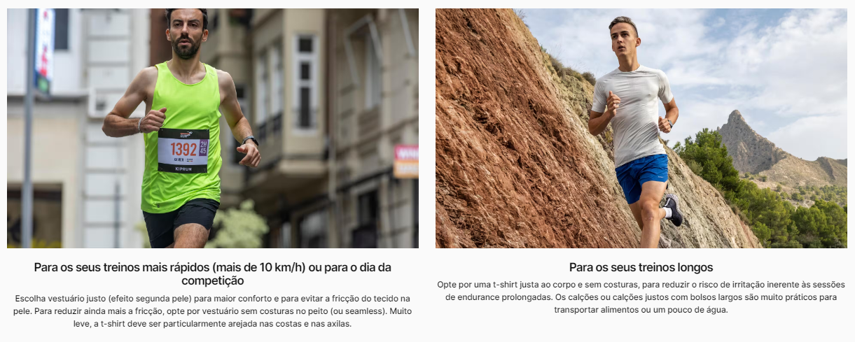 T-shirt leve ou t-shirt sem mangas? Casaco ou corta-vento? Calções justos curtos ou compridos? Descubra como é que um vestuário bem escolhido pode ajudar a melhorar as suas performances e o seu conforto, no treino como na competição.