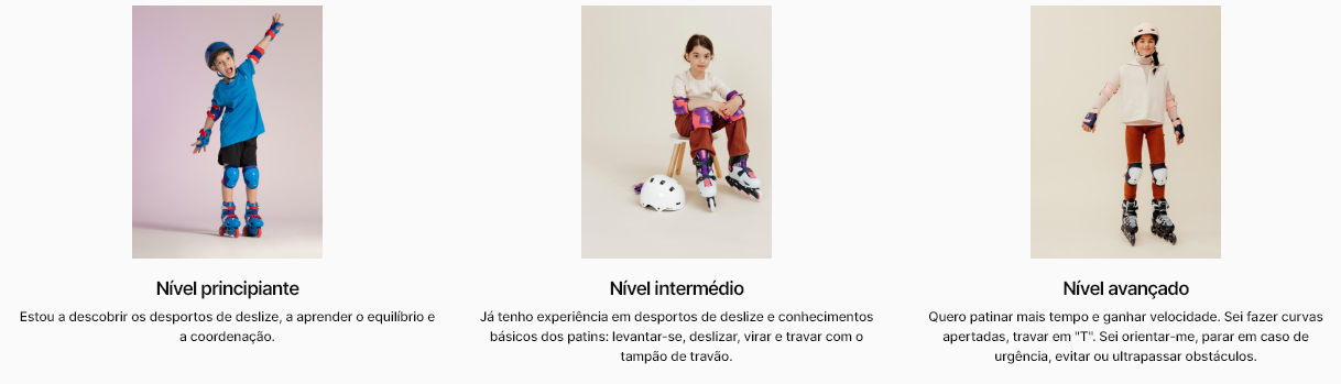 A escolha de patins da tua criança vai depender em primeiro lugar do nível de prática dela: