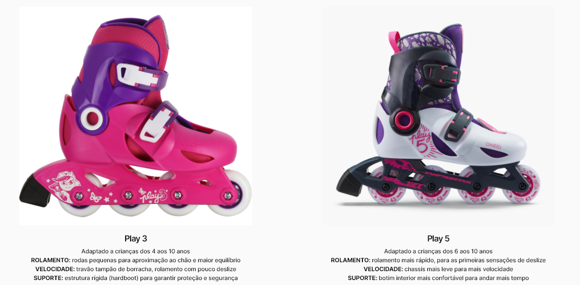 Os patins PLAY3 e os patins PLAY5 vão acompanhar as crianças dos 4 aos 10 anos na sua descoberta por este desporto de deslize.