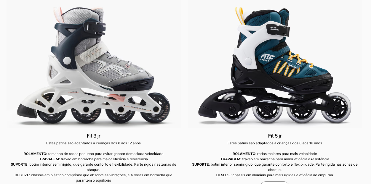 A nossa gama de patins para criança pode ser dividida em 2: a gama PLAY e a gama FIT.